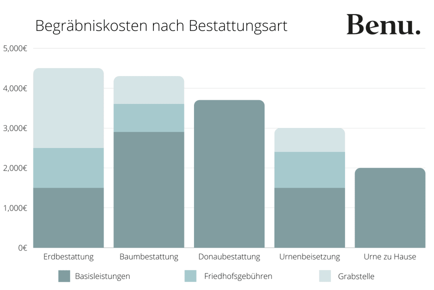 Die Kosten für ein würdiges Begräbnis umfassen normalerweise die Beisetzung in einem Sarg (Erdbestattung) oder einer Urne (Urnenbeisetzung) auf einem Friedhof bzw. in einer biologisch abbaubaren Urne in einem Wald oder in der Donau (Naturbestattung).
